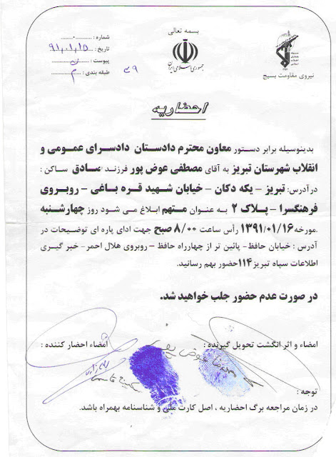 خبرگزاری هرانا - در پی درگذشت یکی از فعالین محیط زیست در تبریز بازماندگان وی به جرم چاپ آگهی ترحیم وی به زبان ترکی توسط نیروهای وزارت اطلاعات بازداشت شدند.بنابه اطلاع گزارشگران هرانا، پس از فوت صادق عوضپور فعال محیط زیست تبریزی بازماندگان ایشان اقدام به چاپ آگهی ترحیم وی به زبان ترکی را نمودند که در پی این اقدام در روز مجلس ترحیم مرتضی عوضپور فرزند متوفی به همراه پسرخالهاش حسن رنجبر توسط نیروهای وزارت اطلاعات بازداشت گردیدند و برای فرزند دیگر متوفی مصطفی عوض پور احضاریه صادر شد.